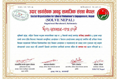 Solve Nepal extends heartfelt congratulations to all the recognized farmers and wishes them continued success and prosperity in their agricultural journey.